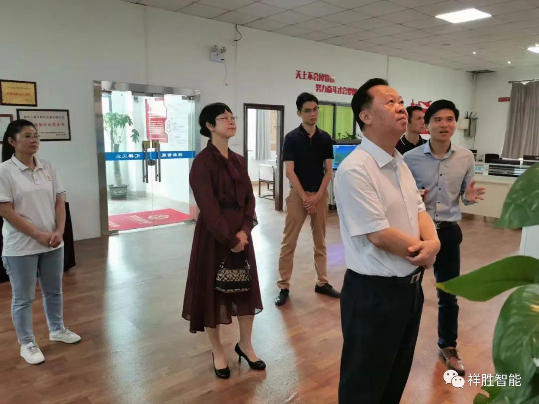 2022年6月9日上午,惠州市政协副主席徐毅、市政协办公室主任周海英、副主任涂天瑜、等领导一同到九游平台_九游(中国)一站式服务平台智能检查指导工作。九游平台_九游(中国)一站式服务平台总经理邓胜威、技术总监邓灿欢、业务总监关康平等高层管理陪同接待,参观了公司产品展厅、专利幕墙、工程设计办公室、设备装配调试车间,就公司的发展及如何推动行业的稳步发展进行了深入的沟通和指导。